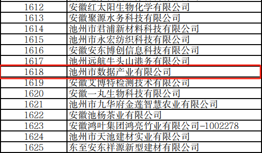 近日安徽省工業(yè)和信息化廳發(fā)布了2024年度專精特新中小企業(yè)公示名單集團所屬池州市數(shù)據(jù)產(chǎn)業(yè)有限公司榮獲2024年度安徽省“專精特新”中小企業(yè)。