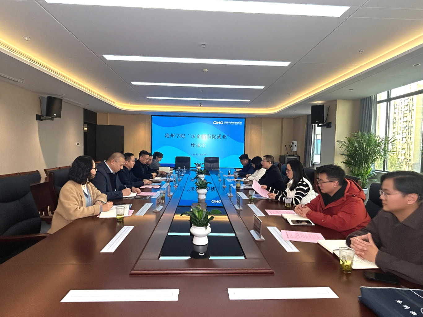 12月16日下午,池州學(xué)院地理與規(guī)劃學(xué)院院長張樂勤一行赴集團(tuán)開展“訪企拓崗促就業(yè)”活動,集團(tuán)黨委委員、副董事長黃代熱情接待并座談交流。集團(tuán)人力資源部及二級集團(tuán)負(fù)責(zé)人、池州學(xué)院地理與規(guī)劃學(xué)院各系主任參加座談交流。