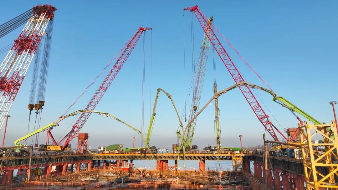12月26日下午,在長江池州段離南岸大堤約380米處的江中施工點,隨著池州長江公鐵大橋4號墩圍堰內(nèi)最后一方封底混凝土的灌入,由集團(tuán)承建的池州長江公鐵大橋4號主墩圍堰封底順利完成,標(biāo)志著池州長江公鐵大橋即將進(jìn)入主墩承臺施工階段,為池州長江公鐵大橋主塔施工打下堅實基礎(chǔ)。
