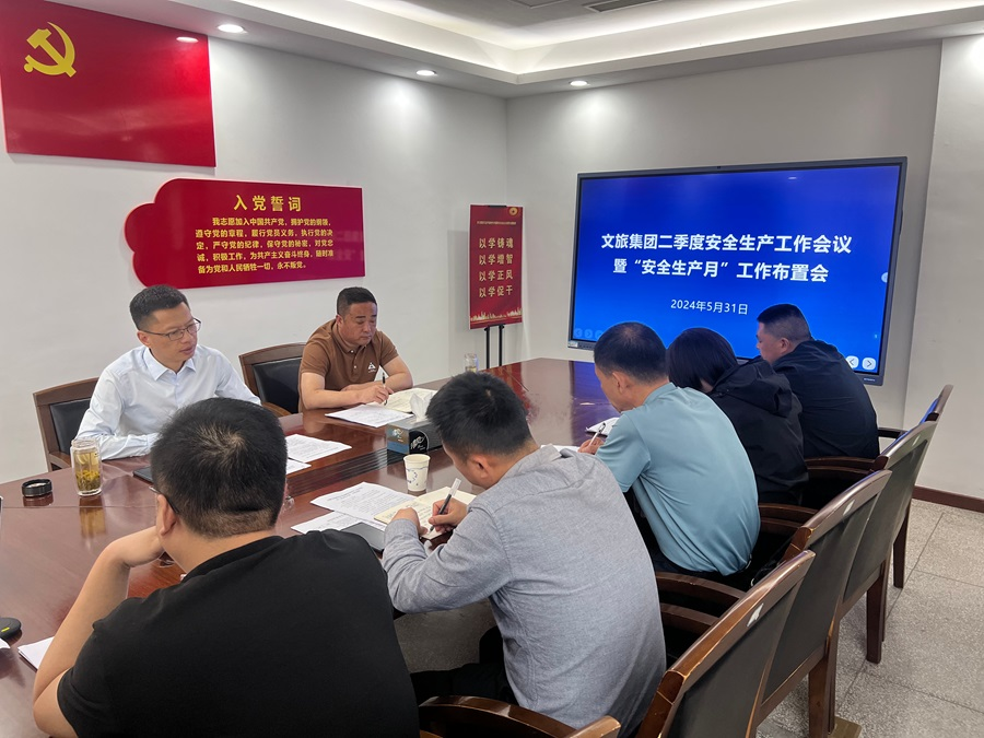會(huì)議傳達(dá)了《2024年文旅集團(tuán)“安全生產(chǎn)月”活動(dòng)方案》;集中學(xué)習(xí)了習(xí)近平總書(shū)記關(guān)于安全生產(chǎn)的重要論述、新《中華人民共和國(guó)安全生產(chǎn)法》;各分子公司匯報(bào)了二季度安全生產(chǎn)工作重點(diǎn)及“安全生產(chǎn)月”活動(dòng)安排;集中觀看了安全月主題宣教片、安全警示教育視頻。